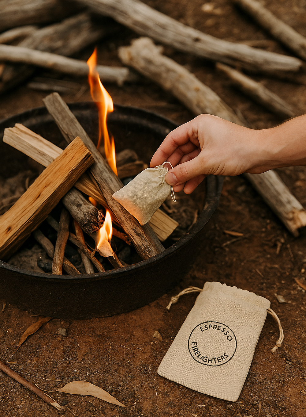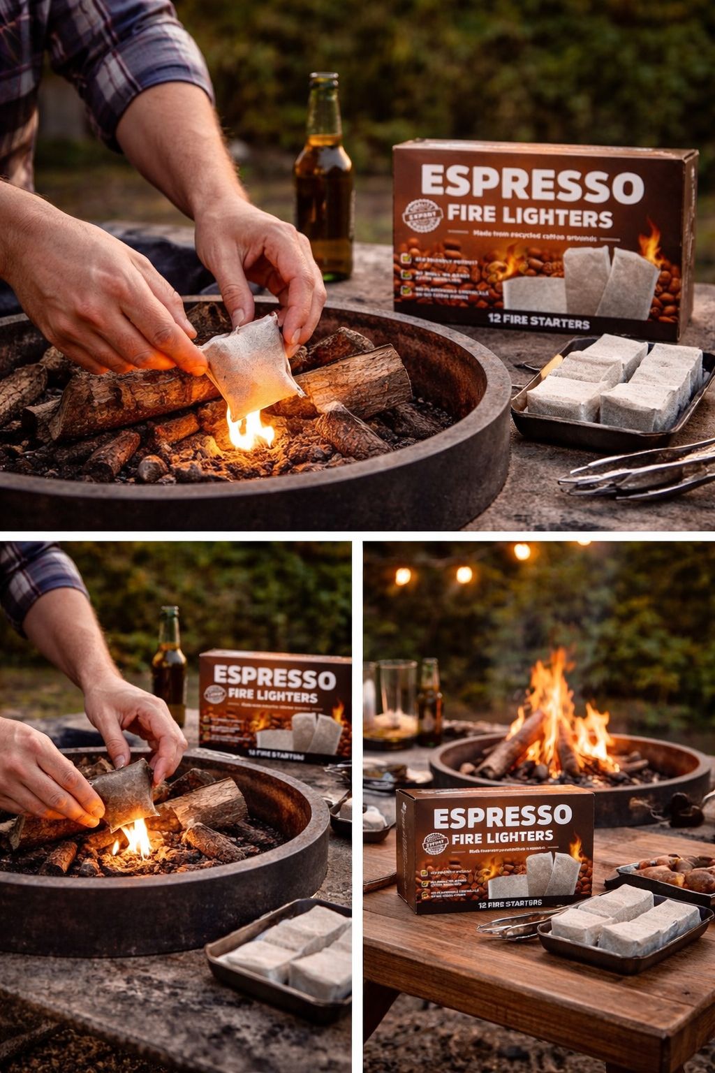 Espresso Firelighters are very impressive. They turn used coffee grinds into flames. Clean burn, zero guilt. My kind of fire lighters. 👆