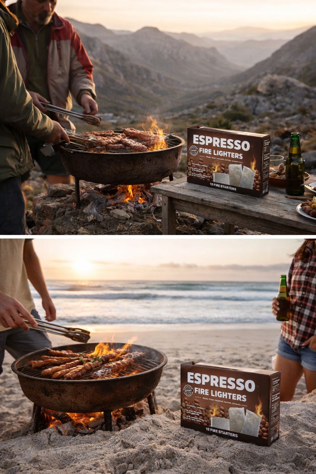 No more smelly fingers! We all grew up around the fire for the regular braai. The distinctive smell and feel of the “famous” firelighter is now a thing of the past. Espresso fire lighters do exactly what it says on the packaging. Clean, environmentally friendly and effective. One of these little packages is good enough to get any fire going. I won’t be going anywhere else. Buy local and buy clean. I was sold from day one. Clean, long burning and no fuels or toxic smells and transfer onto my hands. Fantastic product and definitely one to stay. 🇿🇦🔥